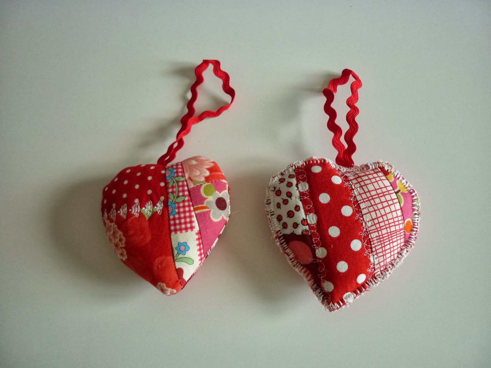 There has been a trial run of Christmas tree decorations using crazy scrappy patchwork. This is definitely a work in progress as I can't decide what I want the finished hearts to look like. I've got another one ready to put together which I'm going to trim with mini-pompoms.